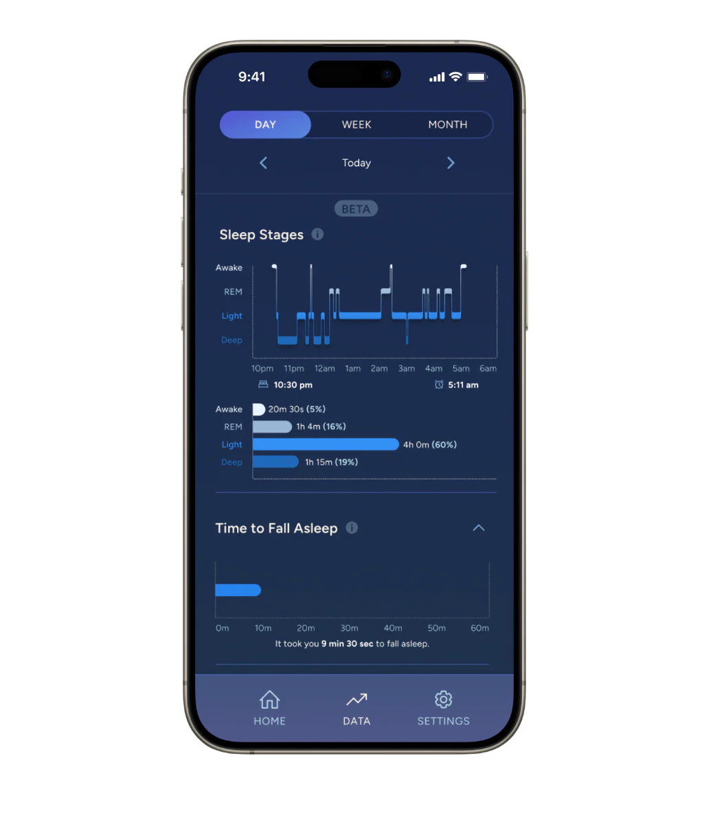 With Elemind, you can restart sleep if you wake up. You can tap the “go back to sleep” button in the app to restart your session, or tap the action button once on the bottom of your headband.